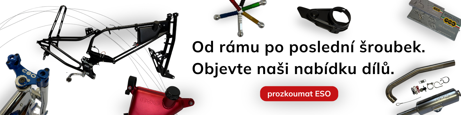 Od roku 1950 značka ESO představuje vysoce výkonné motocykly vyráběné v srdci Evropy. Naše rámy, motory a komponenty používají a důvěřují jim závodníci po celém světě. Ať už hledáte kompletní stroj nebo jen náhradní díly, přinášíme vám desetiletí zkušeností propojených s moderní inovací.